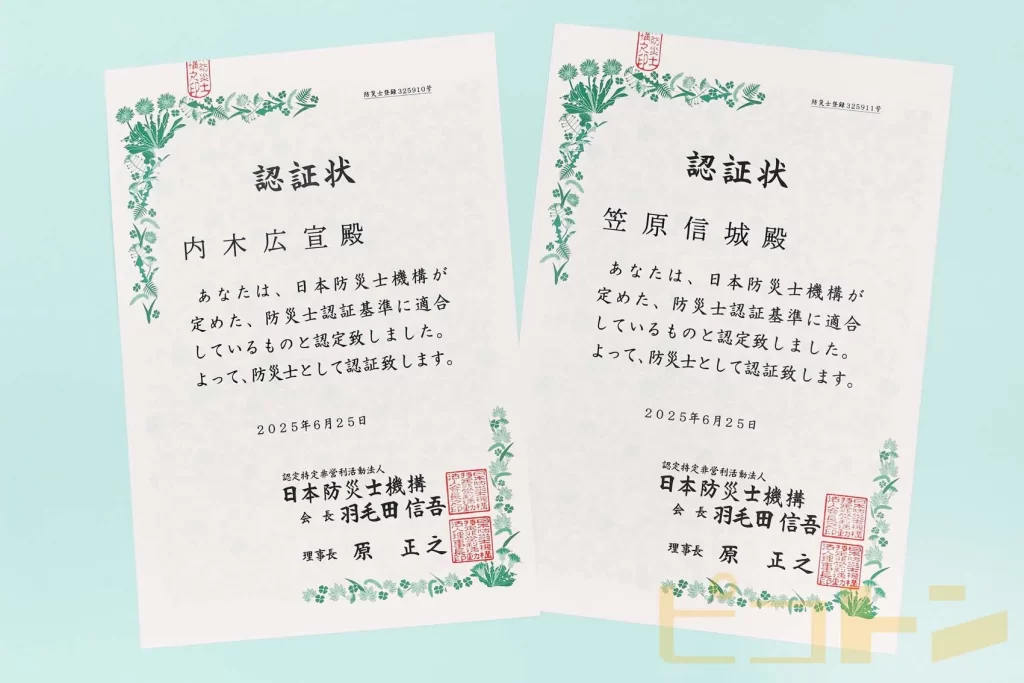 弊社の代表取締役と取締役の2名が防災士の資格を取得しました