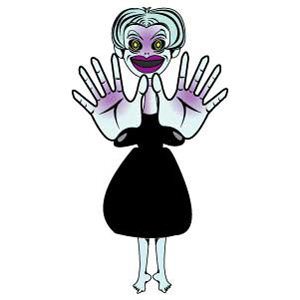 かみがみじかくて、口がたらこくちびるで、ふくの色は黒でスカートをはいている。手がでかい、あと首が長い。