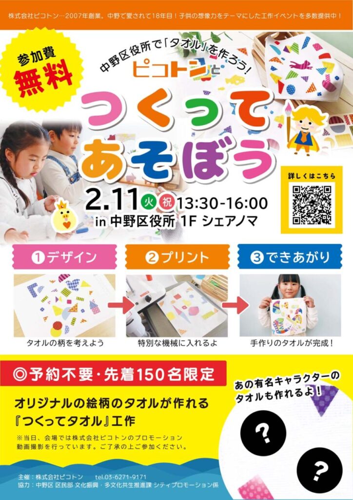 【満足度97%】中野区役所1F 「シェアノマ」でピコトンのタオル作りワークショップを開催しました!|約400名のお客様が来場《2025年2月11日(火・祝)》